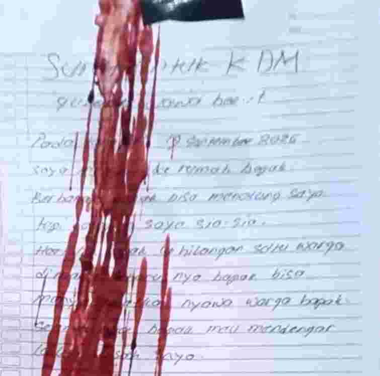 Yang mengejutkan, polisi menemukan secarik kertas berisi surat wasiat yang ditempelkan di tubuh korban. Selain itu, ditemukan pula kertas putih dengan tulisan “Surat untuk KDM Gubernur Jawa Barat” di lokasi kejadian.