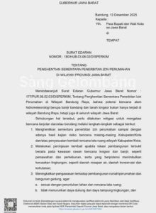 Sebagai langkah konkret, Pemerintah Provinsi Jawa Barat resmi menerbitkan Surat Edaran Gubernur Jawa Barat Nomor 177/PUR.06.02.03/DISPERKIM tentang Penghentian Sementara Penerbitan Izin Perumahan di Wilayah Bandung Raya. Kebijakan ini diambil menyusul tingginya potensi bencana hidrometeorologi seperti banjir bandang dan tanah longsor.