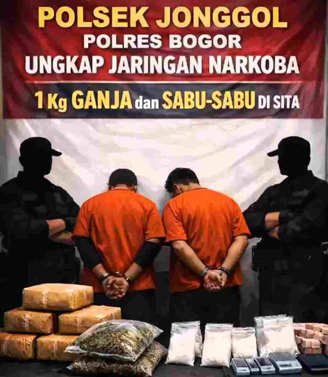 Centralberitarakyat.com|- Pada hari Jumat tanggal 17 April 2026 pukul 17.41Wib Anggota Polsek Jonggol dibawah pimpinan Kapolsek Jonggol KOMPOL HIDA TJAHJONO, SH. dan Kanit Reskrim Polsek Jonggol IPDA ARFIAN FIRMANSYAH P., SH. CPHR telah melakukan penangkapan terhadap 2 ( dua ) orang terduga pelaku peredaran narkoba jenis Ganja dan Sabu di Perumahan Citra Elok Desa Singajaya Kecamatan Jonggol.